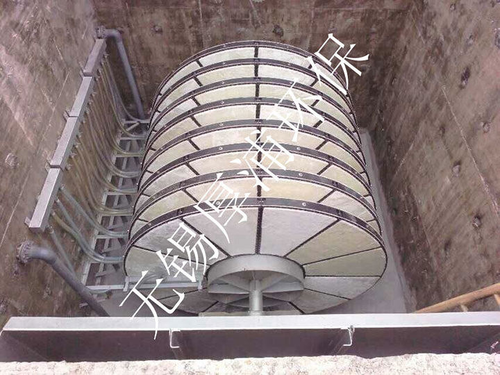 纖維轉盤過濾器是使液體通過一層濾料的機械篩濾作用取出懸浮於液體中的微小顆粒物質。過濾器所使用的濾料由金屬、化纖等多種合成材料以不同方式編織而成,過濾孔徑一般為10~1000um。主要應用於市政汙水處理廠深度處理,工業工藝用水的過濾,以及中水的回用。可替代砂濾池,設置於常規活性汙泥法、SBR係統、CASS係統、延時曝氣法、氧化溝係統、滴濾池係統、氧化塘係統之後,主要用於去除總懸浮物,結合投加藥劑可去除部分總磷、濁度、COD等。